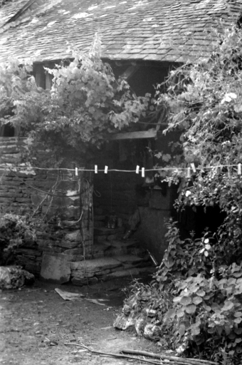 Ancien logis avec escalier de distribution extérieur au sud et avancée au nord.