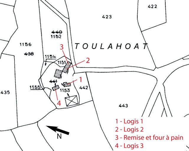 Le hameau (Toulancoat sur le cadastre de 1812) est composé de trois anciens logis dont le plus ancien (logis 1) porte la date de 1834. En 1846, on y recense trois ménages et 24 habitants. Le logis 2, associé à une remise abritant un four à pain, date de la fin du 19e siècle. Le logis 3, avec étable au rez-de-chaussée et l'ancienne habitation à l'étage, pourrait dater de la seconde moitié du 19e siècle.