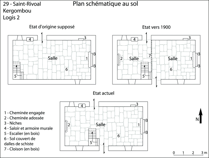 Logis orienté nord, probablement construit au 18e siècle. Au début du 20e siècle, avec l'essor démographique, il est divisé en deux parties habitables : ajout d'une seconde cheminée (ouest), création d'une cloison en bois et le percement d'ouvertures (sud).