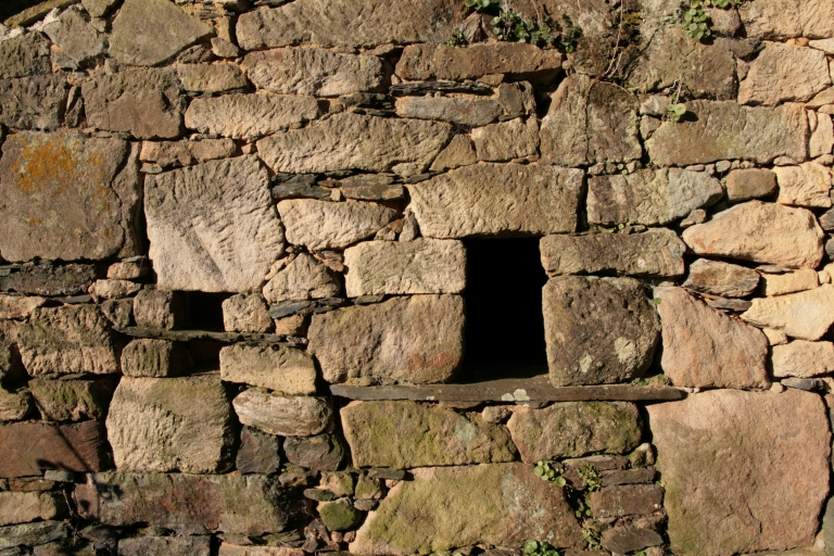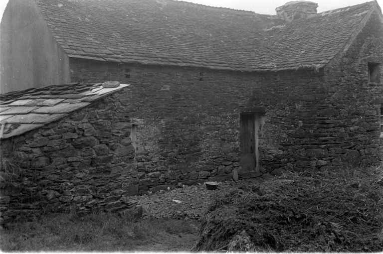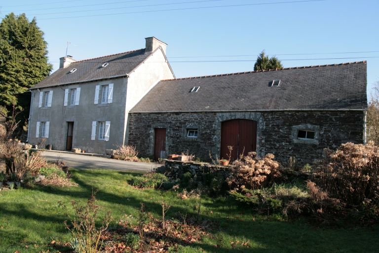 Gros oeuvre en moellons de schiste et de quartzite (logis 1, 3 et 4 et ancien logis) ou en moellons de grès et de schiste (logis-étable 1 et 2 et logis 2) ; encadrement des baies en granite (logis 1 et 3). Parmi les repérages, deux correspondent à des logis-étable (à porte unique et à deux portes), trois à des maisons à avancée (en rez-de-chaussée ou comble à surcroît, toit en bâtière ou rampant) et deux sont de type ternaire. Logis 4 (à avancée : comble à surcroît, toit en bâtière) avec lignolet daté 1891 : date de réfection de la toiture et peut-être réhaussement de la maison (traces sur le pignon de l'avancée). Ensemble de trois granges positionnées au centre du noyau bâti.