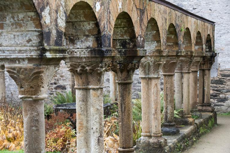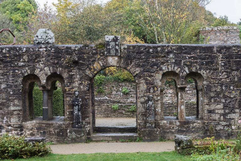 L´abbaye est la seule, parmi les neuf monastères de l´ordre de Saint-Augustin en Bretagne à s´être établie dans cette extrémité occidentale de la région. Elle est édifiée dans l´estuaire de la rivière de Daoulas, en rade de Brest, à la limite entre les diocèses de Léon et de Cornouaille (Quimper). Selon la Vie légendaire de saint Joua, celui-ci aurait été le premier abbé d´un monastère fondé sur le site de Daoulas au cours du 6e siècle. Cette fondation serait due à un seigneur du Faou, désireux d´expier ainsi un double meurtre commis sur deux moines du nom de Tudec et Judulus. Il s´agit d´une légende peu vraisemblable, les fouilles archéologiques menées sur le site n´ont pu mettre en évidence une occupation du site antérieure au 12e siècle. La fondation de l´abbaye au 12e siècle s´est faite à l´initiative de Guyomarc´h, vicomte de Léon et de sa femme, Nobile. La date pose plusieurs problèmes et ne peut-être clairement définie. Il semble que dès 1101 l´ordre de Saint-Augustin est introduit à Daoulas, mais ce dont on est certain c´est que la construction de l´église abbatiale débute en 1167 pour s'achever en 1173 et sa consécration a lieu en 1232. Au 12 et 13e siècles l´abbaye connaît une période de grande prospérité avec la multiplication de donations, faites d´une part par les seigneurs de Léon, d´autre part par les évêques de Quimper. Au 14e siècle la guerre de Cent ans cause des dégâts sur les bâtiments, restaurés sous l´abbatiat de Jean Guerault (1350-1398). C´est vers 1600 que l´abbaye est mise en commende, le premier abbé commendataire est un certain René de Rieux. En 1692, le roi décide d´unir l´abbaye au séminaire royal des aumôniers de la marine de Brest, dirigé par les jésuites. Certains moines s´y opposent, ce qui est la cause d´un long procès. A la Révolution les moines doivent quitter le monastère. En 1790, l´église devient paroissiale et en 1792 les bâtiments sont vendus. Dans les années 1800 plusieurs pierres du cloître sont dispersées et certains des bâtiments détruits. A partir de 1880 débute la restauration menée par l´architecte Bigot. Cinq familles de propriétaires différentes se succèdent jusqu´en 1947 où l´abbaye est achetée par la Congrégation des soeurs franciscaines de Blois qui y installent une école puis une maison de repos dès 1960. En 1984 elles vendent ces bâtiments, dont le Conseil général du Finistère se porte acquéreur. Suite aux fouilles archéologiques menées sur le site de l´ancienne abbaye de Daoulas au début des années 90, nous connaissons mieux aujourd´hui l´organisation spatiale du monastère, la disposition des salles et les différentes périodes de construction des bâtiments conventuels. Précisons dans un premier temps que les fouilles conduites sur le site n´ont pas permis d´identifier une période d´occupation antérieure au 12e siècle. Philippe Guigon le soulignait d´ailleurs : "La fouille menée à partir de 1990 dans le cloître confirme que les plus anciens niveaux de l´installation monastique ne sont guère antérieurs au milieu du 12e siècle". Pourtant M. Bailleu soulignait en 1990 que "la salle capitulaire, quant à elle, fournit d´importants résultats permettant de confirmer l´existence de constructions antérieures à l´édification de l´abbaye".