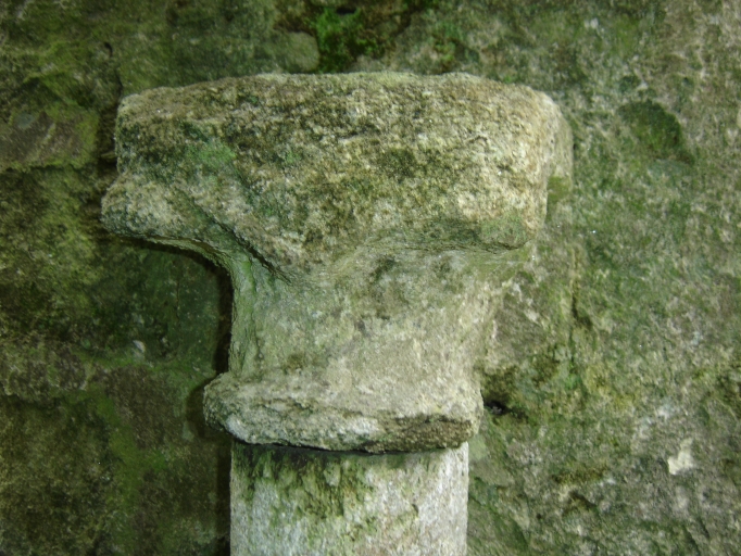 Le chapiteau multiple, déposé, semble correspondre au couronnement d'un pilier d'angle qui devait appartenir au cloître du 12e siècle. Ses dimensions et son profil, très différents des chapiteaux des arcades, indiquerait bien qu'il existait un cloître que l'on ne peut apparenter aux arcades conservées.