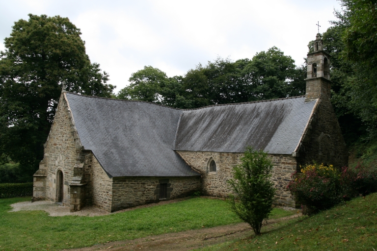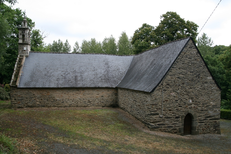 Une chapelle, dédiée à saint Pabu, est attestée en 1500 et fait l´objet d´une bulle d´indulgence. Elle a été en grande partie reconstruite au 17e siècle, en conservant le plan du 16e siècle ainsi que plusieurs éléments (niche crédence nord, portes nord, sud et est, porte de la sacristie). Charpente refaite en 1686 par le fabricien, Guillaume Coadour (inscription et date portée sur une sablière du bras nord), en même temps que les baies est. Réfection du pignon ouest en 1731 par I. Favennec (inscription et date portée au dessus de la porte ouest), du clocheton, avec obstruction de l´occulus. On signale également « de fréquentes et coûteuses réparations » au 18e siècle, ainsi qu´au 19e siècle comme en témoigne l´inscription présente au dessus de la maîtresse-vitre « fait faire par Guillaume Le Moulin » avec la date 1808. Fontaine bâtie dans les années 1640 (date en partie illisible), remontée.