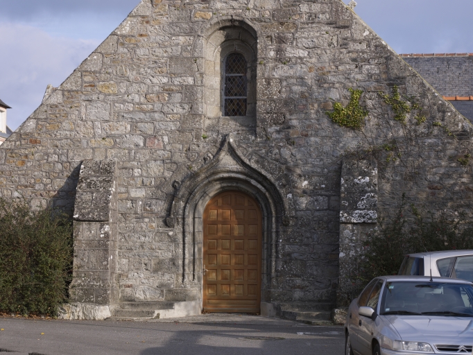 L'église a été en grande partie reconstruite en 1946-1947 par l'architecte Jacques Lachaud, de Quimper, puis consacrée en 1951. De l'édifice précédent, bâti aux 16e et 17e siècles, puis détruit par un bombardement en 1944, subsistent le massif occidental avec tour et flèche, quelques baies, le porche sud et l'arc monumental. Les armoiries des Goulaine et Poulmic, familles donatrices, figurent sur une pierre remployée sous le porche. L'ancien enclos avec cimetière et ossuaire (disparu) figure sur le plan cadastral de 1831. Plusieurs éléments sculptés proviennent d'autres lieux et sont déposés au sud de l'église : une base de croix ou de calvaire jadis à Croas Séméno et portant une inscription (H : Droff/Y : Squividan/1586) ainsi qu'un calice, et deux vestiges sculptés en kersantite figurant des anges présentant un blason fruste et une croix pattée. L'arc monumental, également remonté après le bombardement de 1944, date de la première moitié du 17e siècle. Il est surmonté des statues géminées de saint Magloire et saint Guénolé provenant sans doute d'un calvaire et réalisées dans le second quart du 17e siècle par le sculpteur Roland Doré.