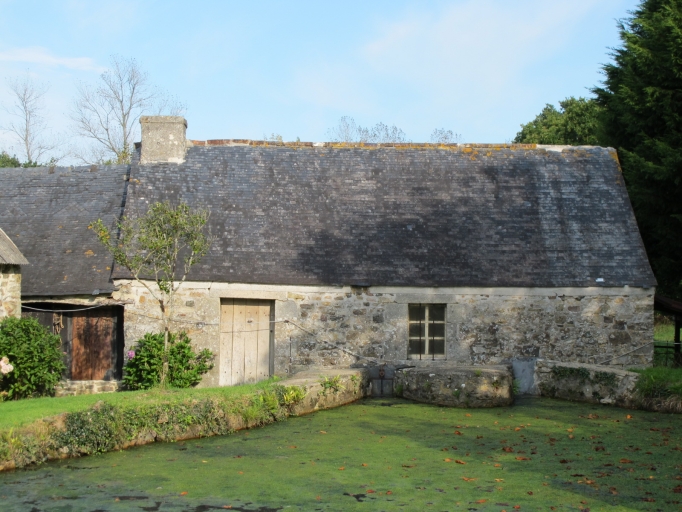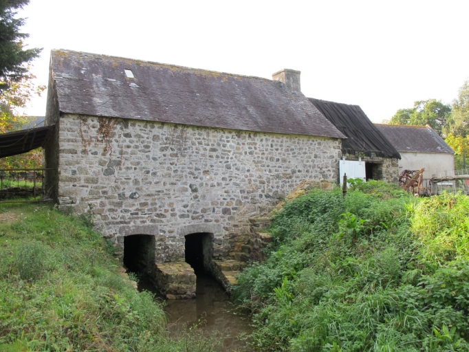 Moulin en rez-de-chaussée, construit en moellon de grès avec encadrements de baies en pierre de taille de granite. Un canal de dérivation de l'Aber alimente une réserve d'eau aménagée devant le moulin. Un système de vannes de décharge et de canaux d'amenée permet à l'eau de passer sous le bâtiment afin d'alimenter une roue horizontale dont l'axe vertical transmet directement le mouvement à la meule. La roue horizontale à pales courbes en bois est dite roue à cuillers. Deux sorties d'eau sont ménagées à la base du mur nord. Une cheminée à linteau et corbelets en bois est construite contre le pignon ouest. L'intérieur des murs est enduit à la chaux.
