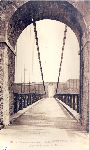 Le premier ouvrage, très moderne pour l´époque et connu par les documents anciens et notamment des photographies, était un pont suspendu à deux piles principales en granite et kersantite. Le pont actuel (1951) dont la superstructure en béton armé est dans un état de conservation critique, sera remplacé par un nouvel ouvrage. Projeté depuis 1998, son achèvement est prévu pour 2011. Le pont actuel sera démoli, à l´exception d´une culée transformée en belvédère. En un siècle, le site de Térénez a été marqué par trois réalisations majeures du génie civil destinées à désenclaver la presqu'île de Crozon.