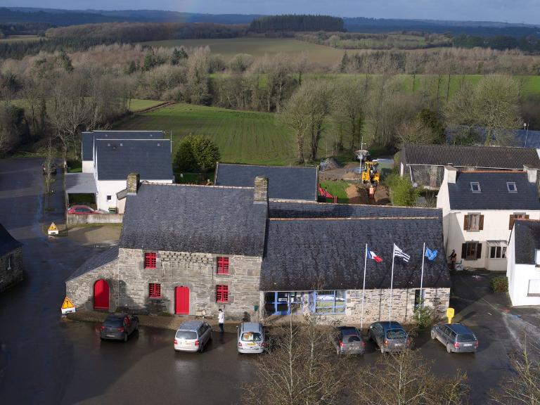 Trois écoles primaires sont édifiées dans le bourg en l'espace de vingt-cinq ans : l'école publique des garçons en 1859 sur l'actuelle place Armand Herry ; l'école privée Jeanne d'Arc en 1873 à l'est de l'église ; la nouvelle école des garçons-mairie en 1884 sur la route du Faou. Un bureau des postes est bâti en 1930 sur une portion de terrain du presbytère.