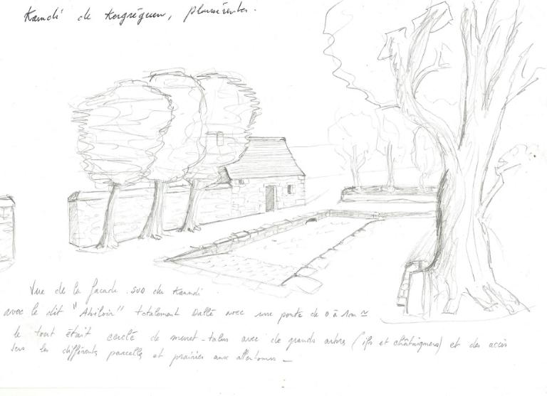 La base d'une cuve en granite, d'un diamètre extérieur de 1,30m et intérieur de 1,10m, est toujours présente dans le kanndi. La base d'une deuxième cuve façonnée dans le même matériau a été retrouvée à l'extérieur, dans la cour de la ferme. Un bassin constitué de dalles de schiste est installé le long d'un pignon.