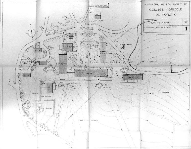 La construction d'un collège agricole sur le site du manoir de Suscinio fait l'objet d'un permis de construire le 19 avril 1966. Le plan masse élaboré l'année précédente par l'architecte morlaisien P. Hodbourg inclut un gymnase. L'ordre de service est délivré le 17 mars 1967 et la réception provisoire des travaux prononcée le 19 mai 1970. Des travaux de rénovation avec extension des sanitaires sont entrepris au début des années 2010.