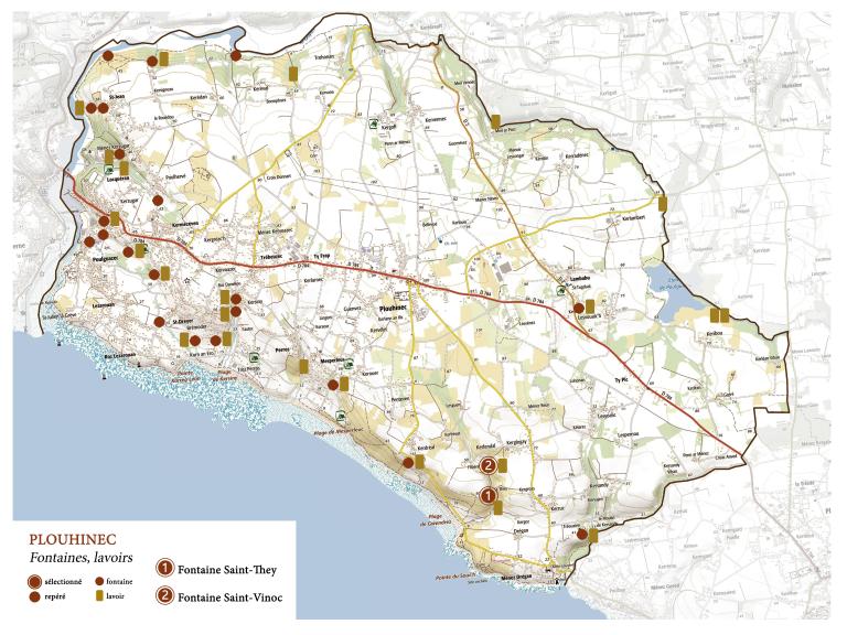Deux édicules font l’objet d’un dossier individuel : les fontaines Saint-Vinoc et Saint-They.