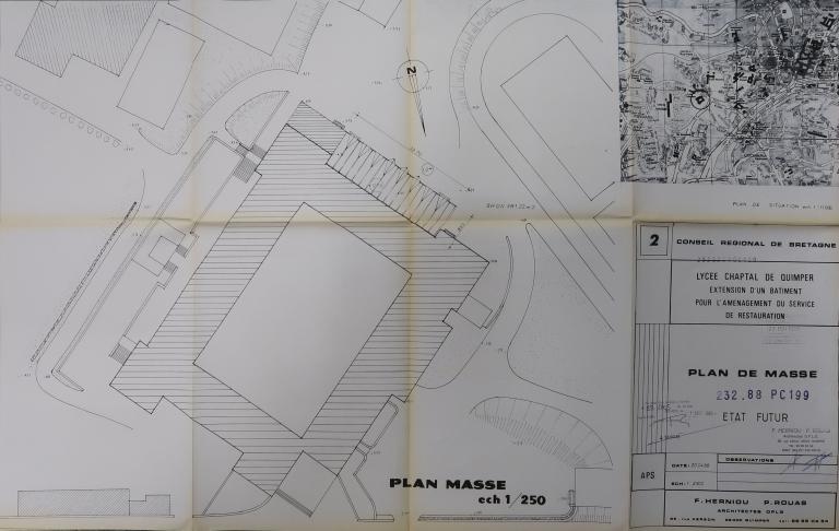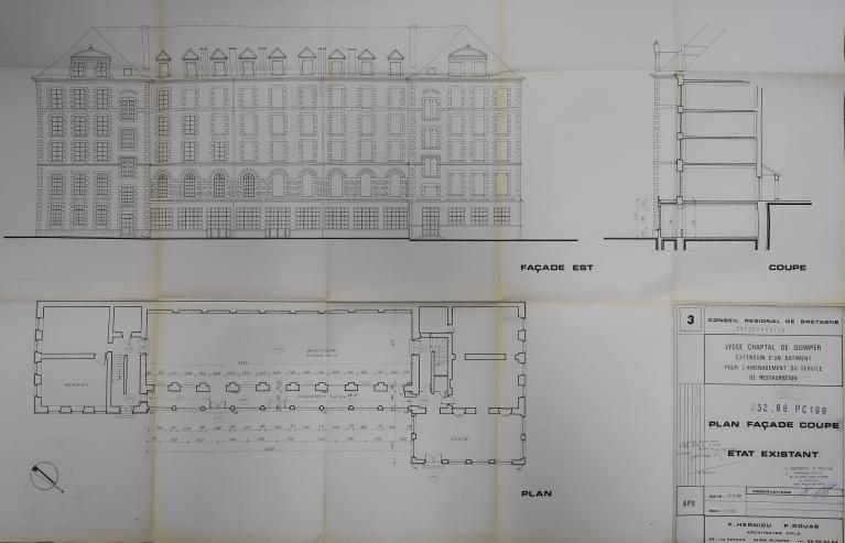 Région Bretagne (Service des archives) : 899 W 189. Lycée Chaptal, Quimper. Permis de construire. 1990