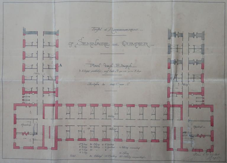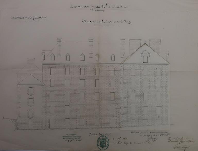La très riche documentation des archives diocésaines de Quimper, des archives municipales et de celles du Conseil régional de Bretagne permet de reconstituer l'évolution du bâti et de l'occupation des quatre ailes, depuis les années 1850.