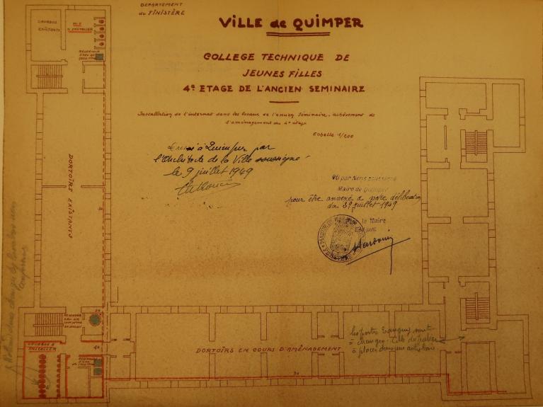 Plan du 1er étage _Centre d'apprentissage féminin de Quimper _ Jacques Lachaud-architecte _ 1953 - 1960 _ AM Quimper - NC :