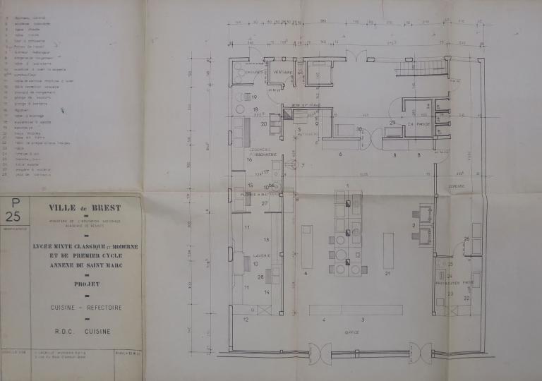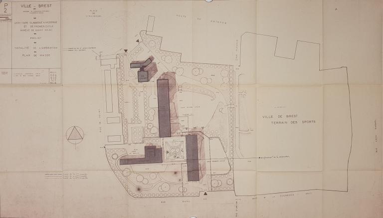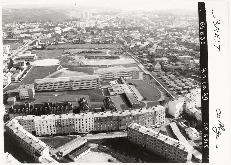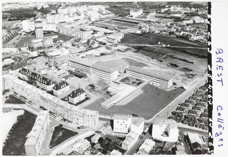 Le grand projet scolaire de la Reconstruction, à Brest, est le regroupement dans une seule cité scolaire mixte, à Kerichen, des enseignements secondaires classiques, modernes et techniques. Les établissements sont d'abord implantés dans des baraques, place de l'Harteloire. Le manque d'espace conduit à réserver ce dernier emplacement au lycée classique et moderne et à installer, également en baraques, en différents quartiers de la ville, les autres enseignements secondaires. En 1946, la municipalité implante ainsi le collège moderne au lieu dit Le Petit Paris, route de Quimper, sur le territoire de l'ancienne commune de Saint-Marc, rattachée à Brest, l'année précédente. Un traité constitutif, signé le 21 avril 1947, crée, pour 10 ans, de façon rétroactive (du 1er janvier 1946 au 31 décembre 1951), le "collège moderne de garçons et de filles de la ville de Brest", dont les cours ont lieu dans des baraques modulaires construites en ciment. Fort d'environ 600 élèves et doté, entre autres, de deux sections de mécaniciens pont et machines, l'établissement devient, en 1953, par lettre ministérielle (18 septembre), une annexe du lycée de Brest. L'évolution statutaire vers un lycée de plein exercice est remise à plus tard. A cette date, c'est en effet l'annexe de Landerneau du lycée de Brest qui devient autonome.