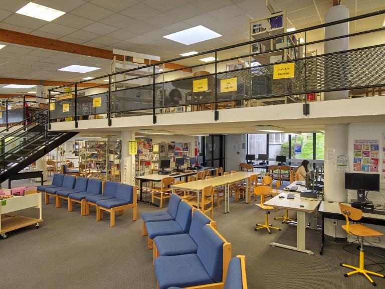 - en 1994, construction d'un CDI selon les plans de l'architecte Gildas Nedélec, qui modifie sensiblement le plan de masse, en occupant un tiers de la surface du patio et en le fermant totalement. La décoration au titre du 1% artistique est au centre du bassin de ce patio (Philippe Hiquily, 1973, voir dossier sue ce même site internet).