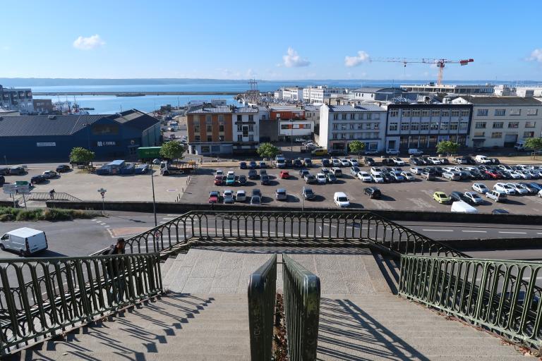 Projet économique, le port de commerce de Brest, est à appréhender en tant que projet urbain : la construction de rampes et d'escaliers permettant accès et liaison avec la ville et la gare, dont le fonctionnement est contemporain du port, ainsi que la création de jardin public en miroir de celui du cours Dajot.