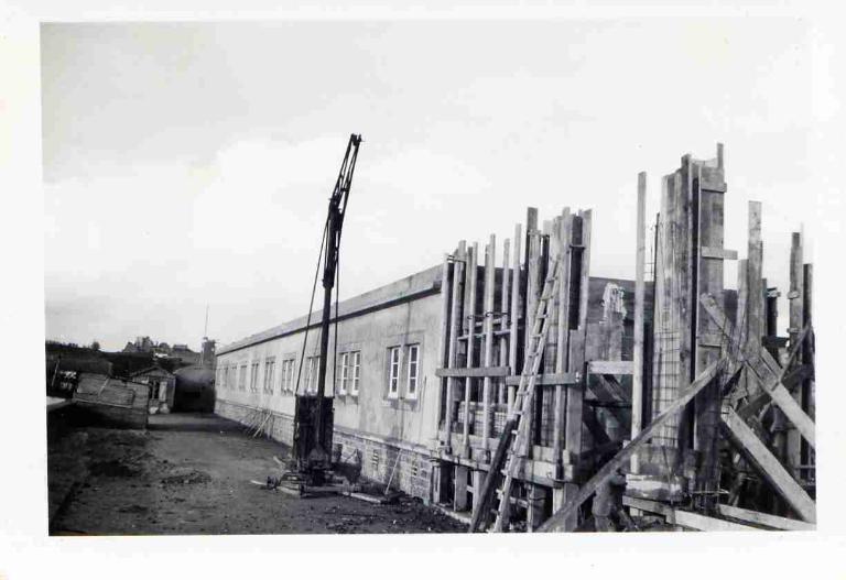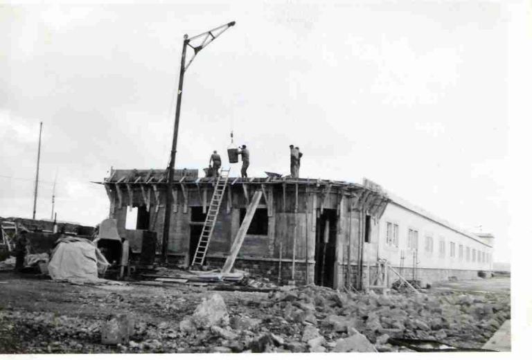 Les ateliers, la station de pilotage, le logement de fonction (conciergerie actuellement bureaux) et le bâtiment principal sont construits en 1949-1954. Le bâtiment, situé au nord de la parcelle, et qui actuellement accueille les vestiaires, était destiné alors aux logements des électromécaniciens stagiaires. Il est construit en 1956.