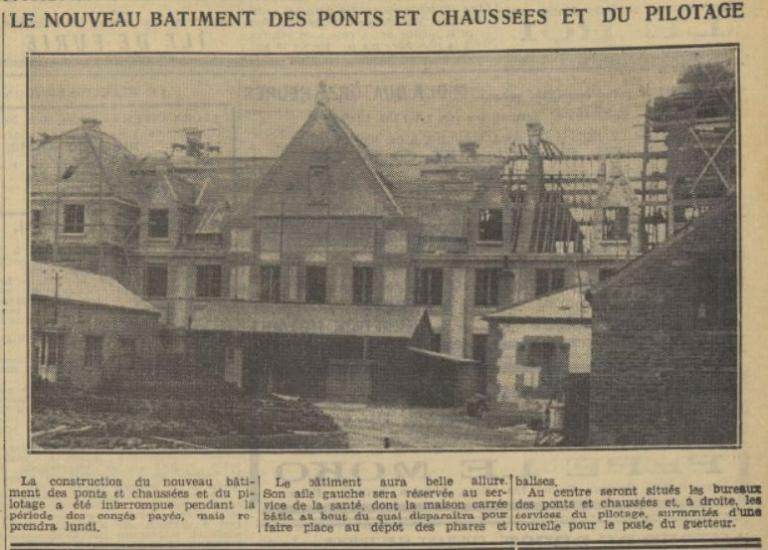 En 1938, la construction d'un bâtiment de style néo-régionaliste permet de réunir sous un même toit les services des Ponts et Chaussées (bureaux au centre), de la santé (partie gauche) et la station de pilotage (à droite du bâtiment présentant une tourelle à usage de guet), entrainant la destruction de la maison de la Santé Maritime et du bureau de pilotage datant de la fin du 19e siècle. L'architecte du gouvernement des bâtiments civils Georges Martin est chargé de l'établissement des plans du nouveau bâtiment.