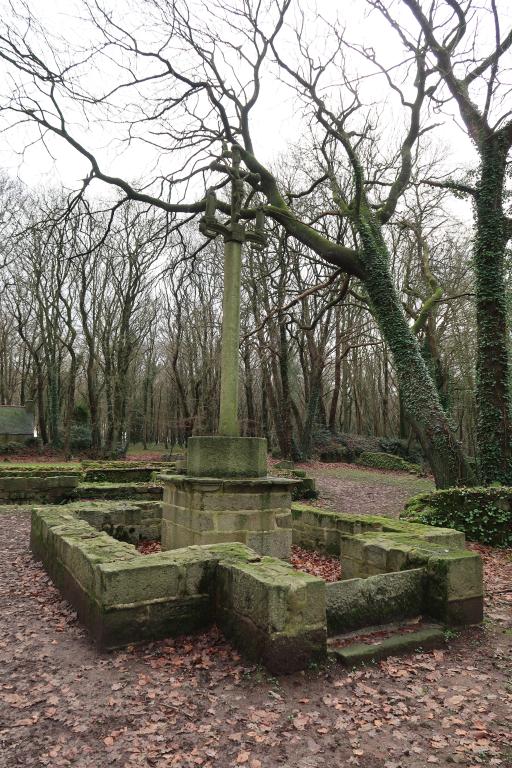 Près de l’un des bâtiments du hameau de La Salle subsistent les vestiges de la statue sommitale d’origine en kersanton : Christ à l’avers et Vierge à l’Enfant au revers (la statue mesure environ 75 cm de hauteur ; les visages sont mutilés). La statue repose sur les éléments - non complets - d’une colonne en granite (?). D’autres éléments de la croix d’origine auraient été transportés au musée du Folgoët (ils ont été transférés à Lesneven). Une seconde statue géminée en kersanton appartenant vraisemblablement à la croix de Lesquélen - est conservée dans le jardin de la ferme de Lesquélen.