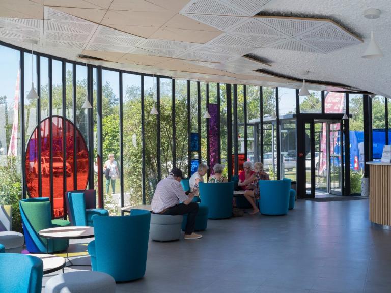 Tout, dans ce village, est conçu pour favoriser le dialogue, la rencontre et la découverte collective. Ce parti pris s’enracine dans les convictions sociales chrétiennes qu’Henri Mouette partage avec Pierre Székely, grand nom de l’architecture-sculpture. Celles-ci guident leur vision du projet de Beg-Meil : l’ambition est d’amener enfants et adultes à faire connaissance, par le jeu, avec l’architecture et la sculpture contemporaine. C’est dans cette optique qu’ils imaginent un lieu vivant, où chaque détail - des formes aux matériaux, des couleurs aux usages - participe d’une pédagogie sensible.