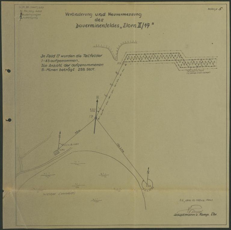 Chaque ensemble fortifié est également protégé par un champ de mines permanents : "Elorn II/73" - "Dattelbaum" (dattier) pour la protection de l’ensemble fortifié "A 1", "Elorn II/74" - "Edelweide" (nom d’une plante à fleur blanche de montagne) pour l’ensemble fortifié "A 5", "Elorn II/75" - "Zwergkiefer" (pin nain) pour l’ensemble fortifié "A 6" et "Elorn II/110" - "Reseda" (réséda) pour l’ensemble fortifié "A 7" (doté de 192 engins de type Holzkasten-Minen, littéralement mines à caisses en bois.
