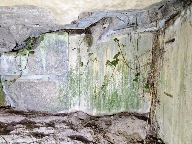 Bunker-abri [B1]. Enterré dans le sol, il permettait d’abriter les soldats en cas de bombardements. Dans la salle de garde (12 m2), les soldats disposaient d’un poêle pour le chauffage et la cuisine, de lits superposés, d’une table, de bancs et de tous les équipements nécessaires à la vie quotidienne et au combat. Particularité : il est doté d’une entrée et d’une sortie de secours ; le plafond de la salle de garde est en tôle ondulée cintrée appelée "tôle métro".