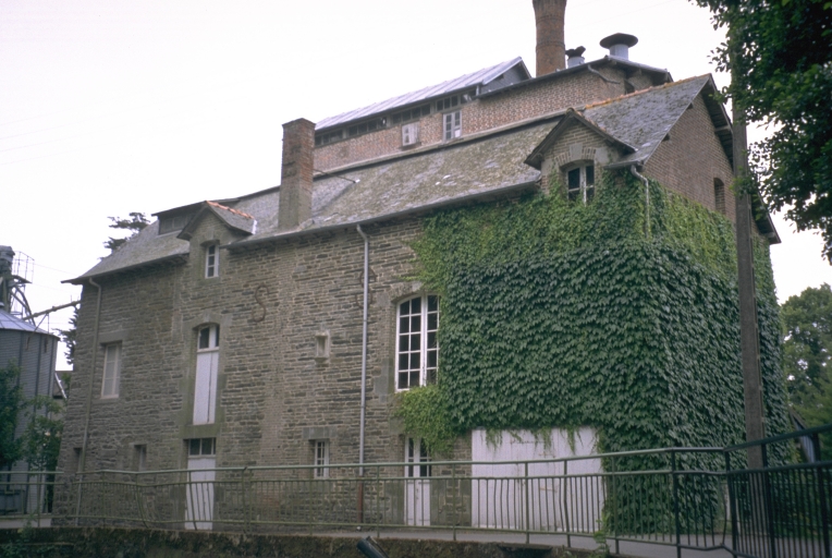 Le site se compose de plusieurs corps de bâtiment répartis autour d'une cour. La minoterie comprend deux corps adossés correspondant à deux anciens moulins. Le plus important, construit en schiste, compte un étage de soubassement, un rez-de-chaussée surélevé et trois étages carrés percés de baies à arc surbaissé encadrées de briques. Sa partie haute, surélevée en briques, est couverte d'un toit à longs pans en ardoises surmonté d'un lanterneau. Il est flanqué du bâtiment des machines, en appentis, recouvert d'un essentage de tôle, duquel s'élève la cheminée d'usine en briques. Le second moulin possède un étage de soubassement, un rez-de-chaussée surélevé, un étage carré et un étage de comble à surcroît. Il abrite, à son extrémité, la roue hydraulique à aubes toujours en place. Le bureau compte un rez-de-chaussée et un étage de comble couvert d'un toit à croupes en tuiles mécaniques percé, sur un de ses versants, d'une lucarne rampante ; sur l'autre versant, une seconde lucarne est surmontée d'un épi de faîtage décoratif, un chat en céramique. De l'autre côté de la cour se dressent l'entrepôt industriel enduit et couvert d'un toit à longs pans, ainsi que les silos. Le logis patronal, de plan rectangulaire, comprend un étage en surcroît couvert d'un toit à longs pans à égout retroussé en ardoises. Alors que le rez-de-chaussée est construit en schiste, l'étage en surcroît ainsi que les pignons bordés d'un auvent en ardoises, portent un décor en pan de bois hourdé d'enduit. Trois des quatre fenêtres passantes du dernier niveau de la façade antérieure sont coiffées de petits toits coniques.
