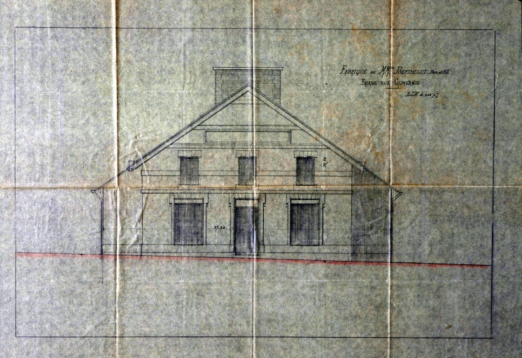 Fabrique de MM. Berthelot père et fils, élévation antérieure, AM Rennes 100W 2. Alignement. Autorisations de construire, arrêtés de construction, rue Gurvand (mars 1897).