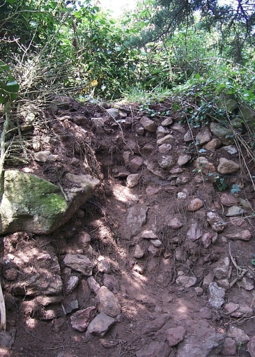 Retranchement en terre et moellons de près 250 m de long, 6 à 8 m de large à la base ; élévation sur un axe Est-Ouest ; en grande partie arasé sur la partie est.