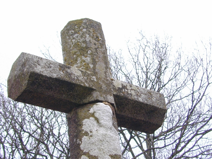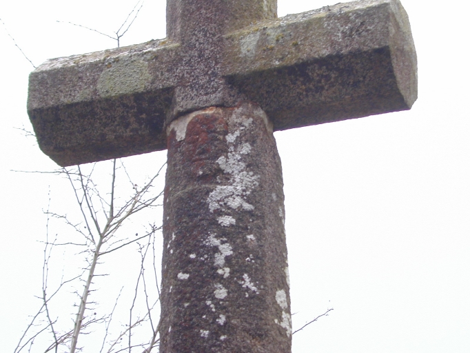 Cette croix de chemin érigée sur un ancien chemin limitrophe de deux paroisses, aujourd'ui abandonné présente un haut fût et une section carré chanfreinée. A l'intersection de la traverse et du fût figure deux masques sculptés en bas-relief, l'un à l'avers, l'autre au revers représentant des personnages inconnus