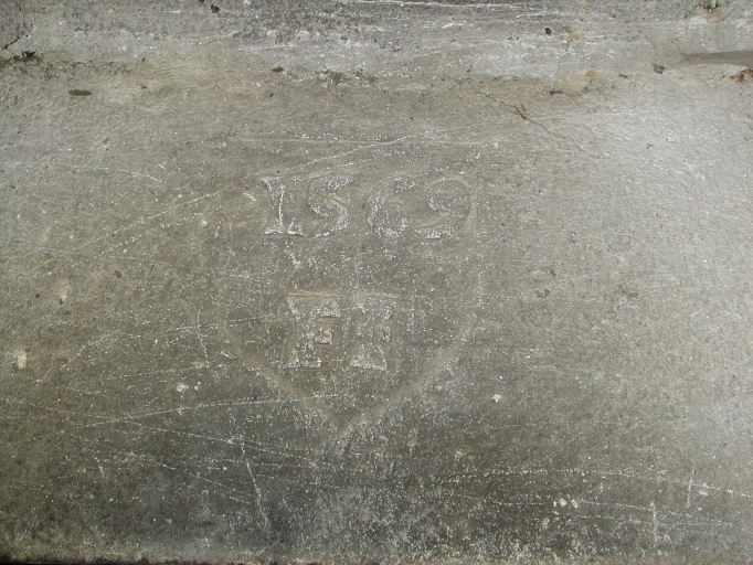 Inscriptions concernant les commanditaires sur la cheminée du logis ouest : 1569 / FI ; sur la porte nord du logis est : GUINO 1747