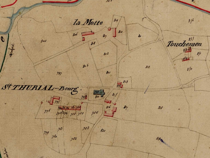 Canton de Plélan. Commune de Saint-Thurial. Section C, dite du Bourg, 3e feuille. Dessin, Lesné géomètre, [1823], échelle : 1/2500e. (A.D. Ille-et-Vilaine).