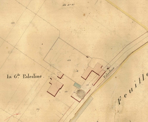 [1842]. Plan cadastral parcellaire de la commune de Rennes. Section B, dite du Palais, 1ère feuille, dessin, Jouchel du Ranquin, Roger, Viel, Ferré et Simon géomètres, 1842 (A. D. Ille-et-Vilaine).