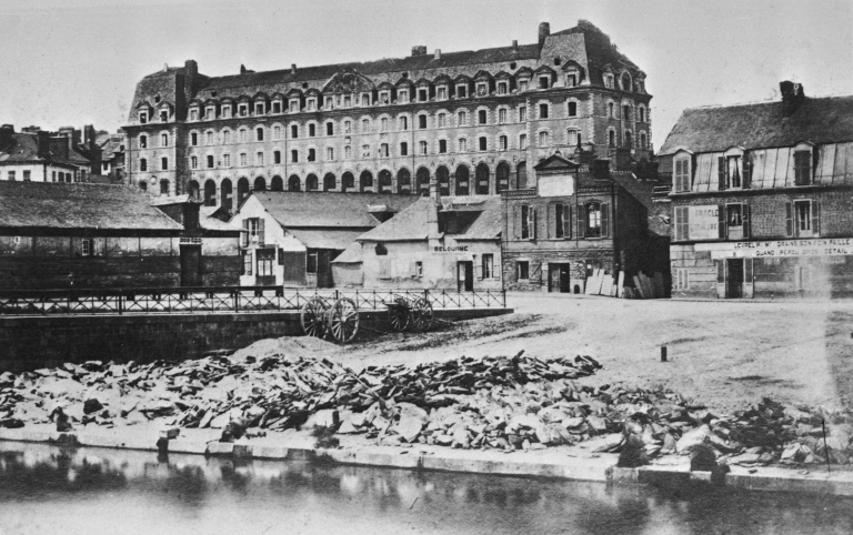[1870 ca]. La cale de Viarmes, photographie, vers 1870, in VEILLARD Jean-Yves, Rennes naguère 1850-1939. Paris : édition Payot, coll. Mémoires des villes, 1981.