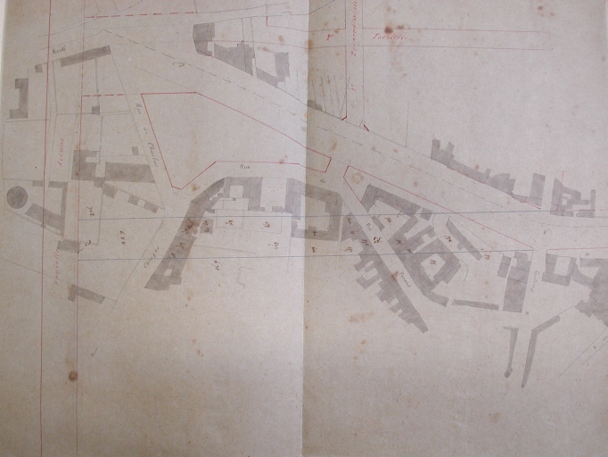 [1855]. Plan de la ville de Rennes, rues proposées au sud des murs, 1855 (A. C. Rennes ; 1 Fi 75).