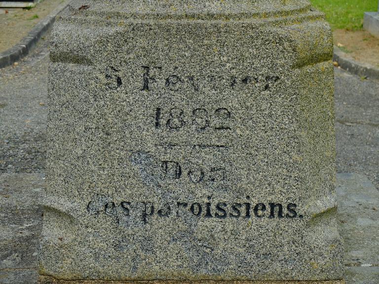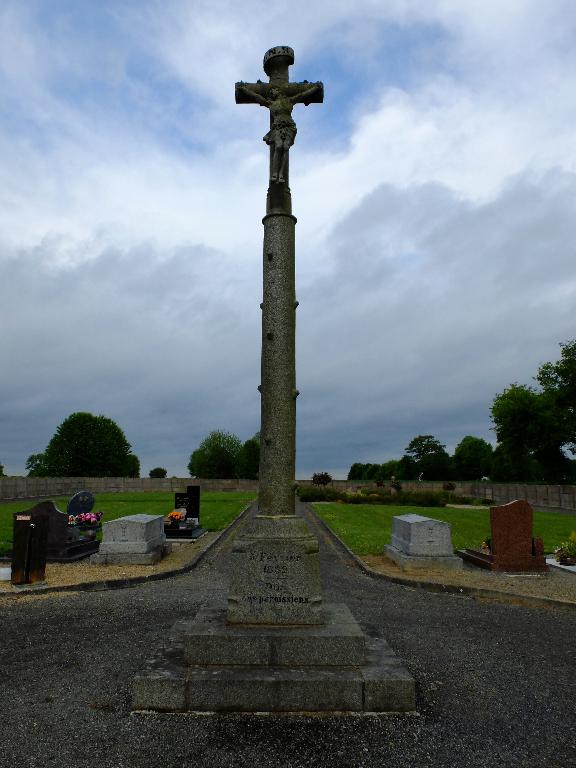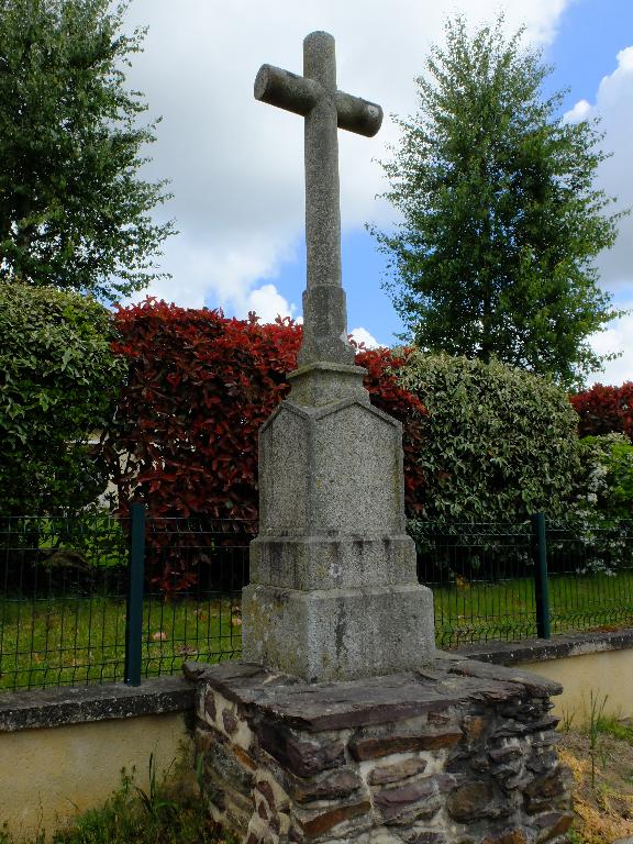 La croix de cimetière datée de 1882, était à l'origine implantée sur la place du centre, mais fut intégrée au cimetière suite au déplacement de ce dernier dans les années 1970 au nord ouest de la commune. Au cours de ce déplacement, une croix monumentale déjà présente dans le cimetière primitif qui entourait l'église a disparu. Elle présentait un socle en granite avec un décor sculpté.