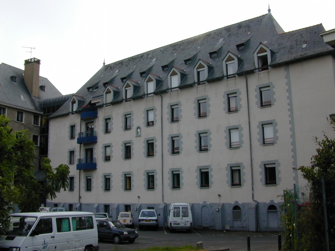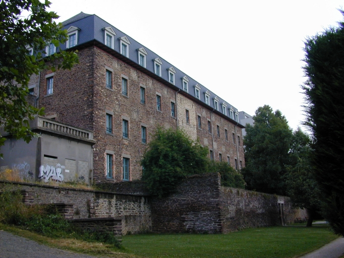 (Enquête thématique départementale, Sarah Kergus, 2025) L´édifice est partiellement visible sur le plan Caze de la Bove (1783) qui figure les dénivelés de terrains successifs qui surplombent les marais bordant le site de confluence des rivières de la Vilaine et de l´Ille et le cimetière, au sud-est des bâtiments conventuels. Le cadastre de 1842 en donne une première représentation précise. Les bâtiments conventuels, de plan en L, ferment les côtés sud et est du cloître, au nord duquel se situe la chapelle. Un bâtiment isolé apparaît au sud, à l´est d´un oratoire de plan carré à pans coupés ; celui-ci est desservi par un chemin qui relie la nouvelle route de Brest et la ruelle Saint-Cyr (actuelle rue Papu). Les archives communales indiquent que l´édifice est agrandi en 1930 et 1932, par l´entrepreneur Novello, de dépendances associées aux logements de la Maison de Refuge, construite au début du 20e siècle, à l´est des bâtiments conventuels. L´architecte Couasnon dessine les plans d´une buanderie et d´une cuisine (1930) puis de bains-douches (1932) actuellement détruits, comme le bâtiment reconstruit, en 1946, par l´architecte Charles Rallé. Entre 1956 et 1965, plusieurs travaux d´agrandissement sont réalisés sur les plans des architectes Coirre et Glorot. L´extension des bâtiments conventuels, au nord, en bordure de la rue Papu est construite en 1956 ; la construction d´un dortoir et d´un réfectoire, implantés au sud, à proximité de la rue Louis-Guilloux, a lieu en 1962, suivie de celle d´une salle d´éducation physique, en 1965.