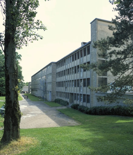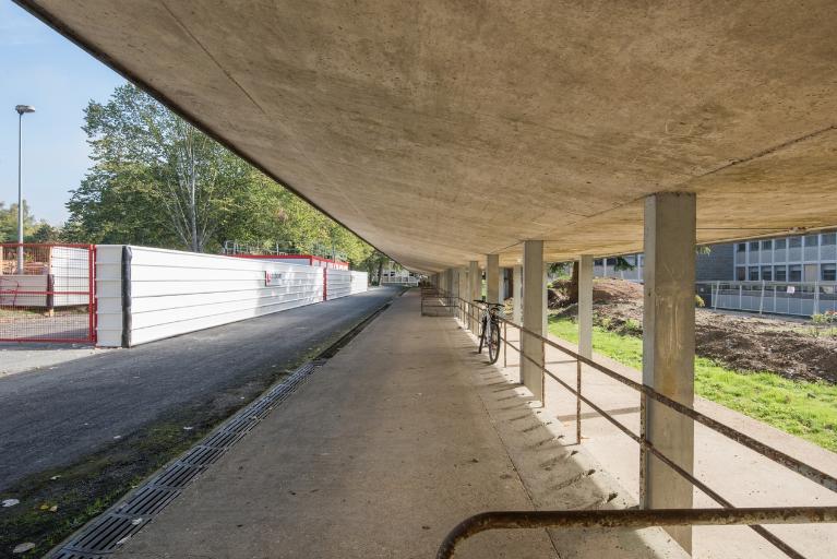 L’architecte, qui est une des figures régionales de l’architecture du 20e siècle à Rennes, compose avec le vaste parc, de 20 hectares. Il a su, en outre, créer un « événement architectural » avec le bâtiment de la restauration. Et jouer avec les contraintes du programme et du procédé constructif pour apporter une touche qui se lit dans de nombreux détails.