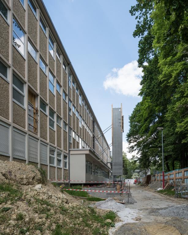 Un nouveau bâtiment va être construit, au nord de la plus grande barre, pour abriter le nouveau service de restauration. Sa réalisation a été confiée au groupe Legendre qui s’est attaché les services de la même agence Anthracite Architecte 2.0 pour les plans du projet. L'actuel restaurant scolaire va être conservé et affecté à de nouveaux usages.
