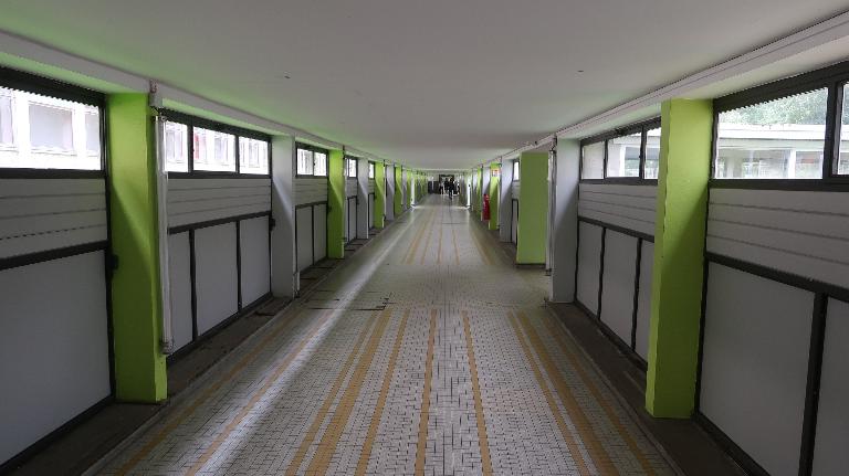Louis Arretche casse encore la répétition en diversifiant remarquablement le traitement des entrées, des galeries de circulation et des quelques escaliers extérieurs. Il y apporte beaucoup de soin. Ici, les escaliers extérieurs sont vitrés. Là, ils sont ouverts. Ici, il ouvre le couloir latéral, en rez-de-chaussée. Là, pour désengorger les couloirs de la longue barre de 200, est construit, quelques années plus tard, "le métro", une galerie de circulation, fermée sur les deux tiers...