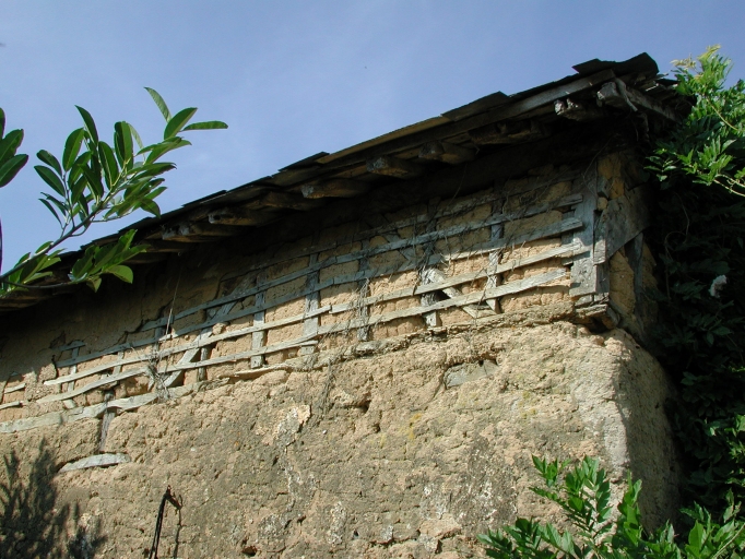 Cette maison est construite en bauge sur un solin de schiste et de poudingue. La partie supérieure des murs ainsi que le pignon sont en torchis.