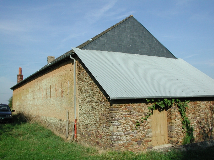 Ce bâtiment est élevé en bauge sur un solin de schiste. Il est couvert d'ardoise. Des portes hautes et portes hautes pendantes sont percées dans le comble à surcroît.