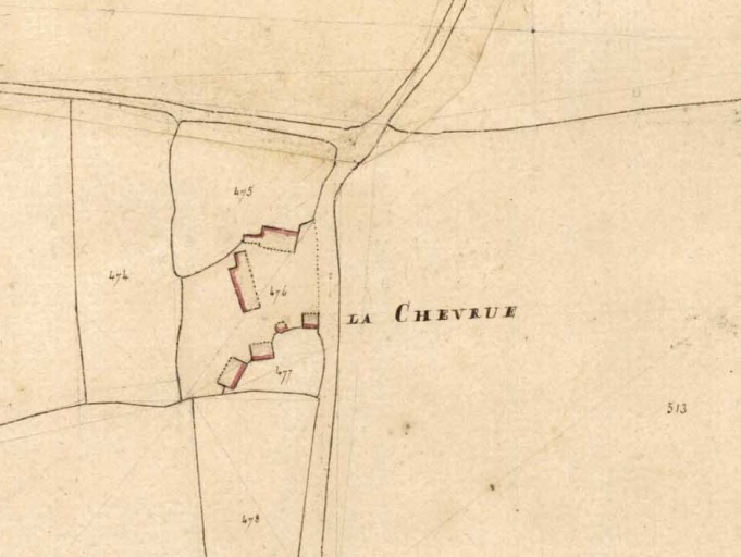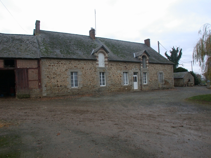 Logis de parti bas à trois pièces à feu. Double en profondeur. Gros oeuvre mixte, encadrements des ouvertures en pierre de taille de granite, Lucarne pendante en brique et tuffeau. Parties agricoles imposantes. Organisation en U autour d'une cour unique.