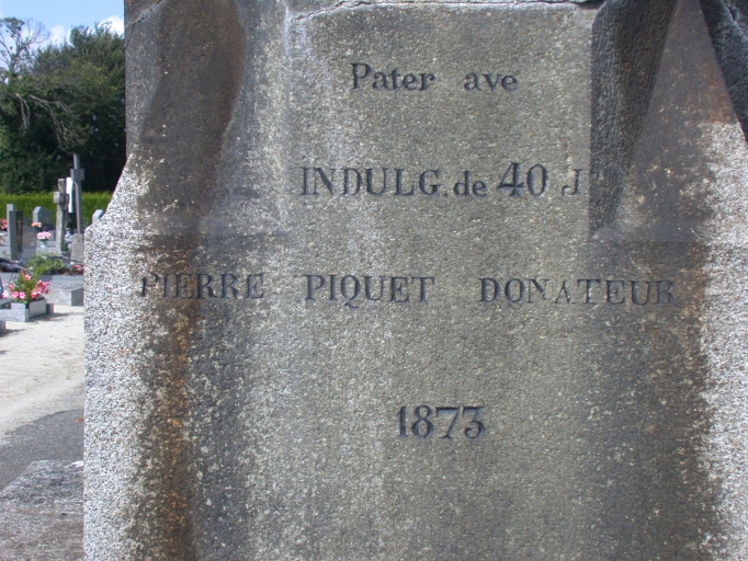 Inscription : Pater ave/ INDULG. De 40 J/ PIERRE PIQUET DONATEUR/1873.