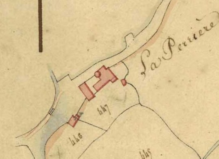 L'appellation de la Perrière indique l'emplacement vraisemblable d'une ancienne carrière de grès. Le logis en place remonte pour sa partie la plus ancienne à la fin du 16e siècle ou au début du 17e siècle. De cette période subsiste quelques éléments dont la tour arrière circulaire hors oeuvre. Une chapelle est également mentionnée en ce lieu en 1633. Par testament du 3 décembre 1633, René Pontivi y fonda une messe tous les samedis et la dota d'une rente de 20 livres. Le plan du premier cadastre de 1827 indique sur le bord du ruisseau de Monboury, un bâtiment rectangulaire qui selon le propriétaire actuel aurait servi au séchage du chanvre exploité dans la commune. Après 1827 de nouveaux bâtiments de ferme sont construits, étable, écurie et le logis est agrandi.