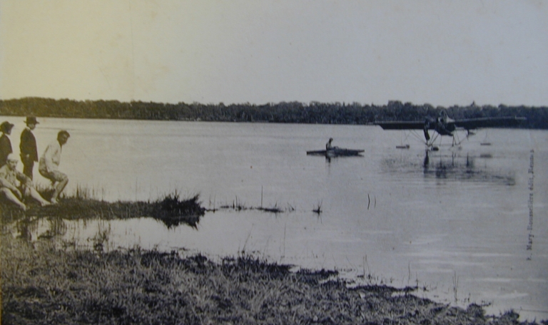 Feins. L'étang du Boulet, essais d'hydroplane. Carte postale, Rennes : E. Mary-Rousselière, édit., [s. d.].