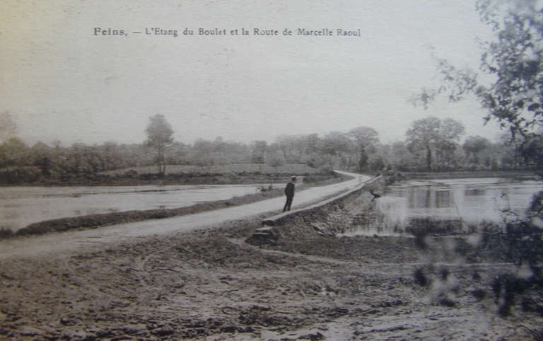 Feins. L'étang du Boulet et route de Marcelle Raoul. Carte postale, [s. l. ; s. d].