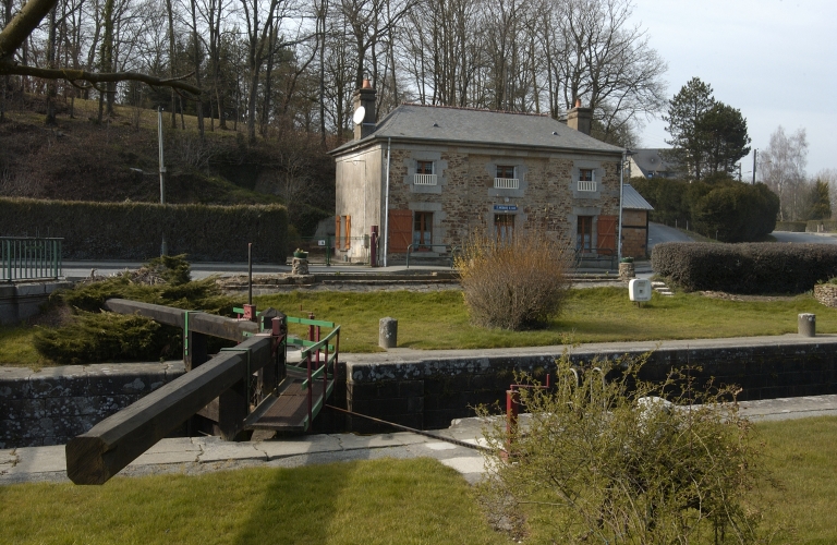 Sur la façade, deux grandes fenêtres de deux vantaux et quatre carreaux encadrent la porte avec imposte. Trois petites fenêtres de deux vantaux et deux carreaux sont les ouvertures de l’étage. Une barrière en bois est située devant chaque fenêtre. Les linteaux et les pierres d’appuis des fenêtres et de la porte sur la façade sont en granite. L’encadrement est fait de pierres harpées de même longueur. Un trait de peinture blanche termine l’encadrement de la porte et des fenêtres. Sur la façade arrière, une fenêtre au rez-de-chaussée dispose d'un appui en béton. Une autre fenêtre à l'étage est encadrée par des pierres de granite. Sur le mur pignon, sud-ouest, une fenêtre disposant d'un appui est placée à côté du conduit de cheminée.