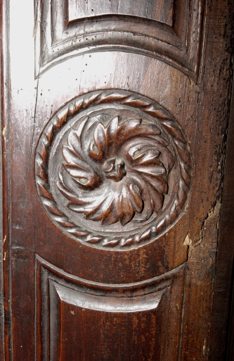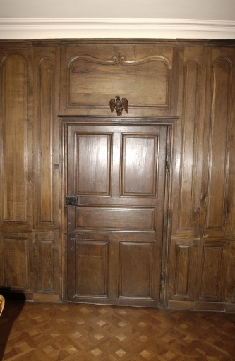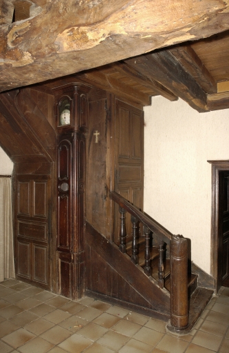 L'ancienne maison de notable date vraisemblablement du milieu du 18e siècle ainsi que l'attestent la composition à travées de la façade ou, par exemple, le remarquable travail de menuiserie réalisé lors de la fabrication d'une cage d'escalier intégrant une horloge ou encore le lambris de couvrement qui habille l'ensemble des murs d'une salle en rez-de-chaussée. Ainsi le logis de cette exploitation rurale appartenait certainement à un commanditaire relevant de la notabilité locale. [Le blason au dessus de la porte d'une annexe n'est cependant pas identifié]. Des parties agricoles en terre furent ajoutées au 19e siècle ; d'autres furent détruites récemment au sud et à l'est de la cour.