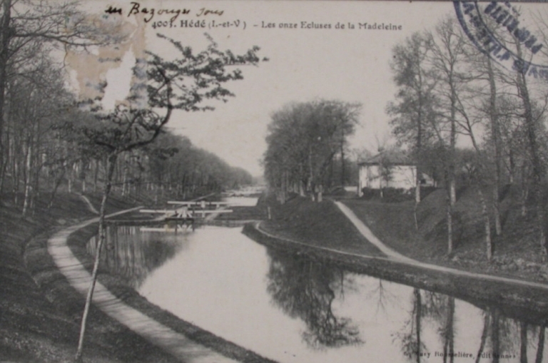 En ce qui concerne le territoire de la commune de Hédé, il compte onze écluses distantes l'une de l'autre de 183 à 319 mètres, le tout sur une longueur de 2, 161 kilomètres pour rattraper une dénivellation de 27, 06 mètres.